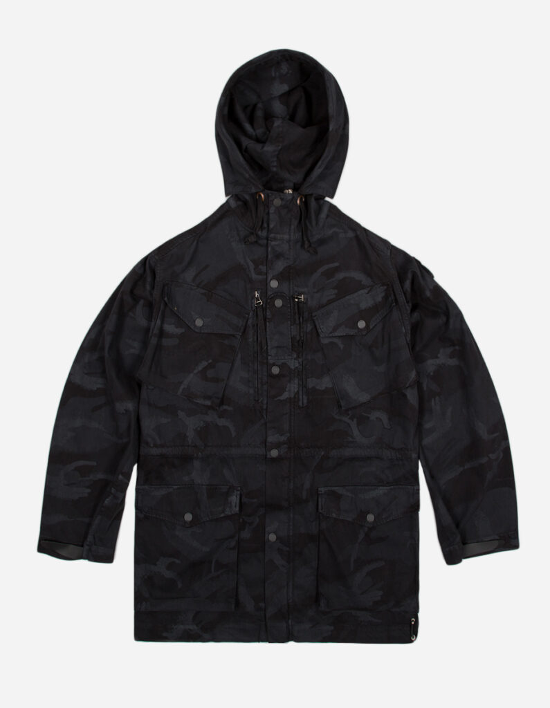 C’est une parka d’inspiration militaire, avec ses poches montées à l’extérieur, ainsi qu’une patte au niveau de la gorge permettant de faire passer la sangle d’un sac en bandoulière.
