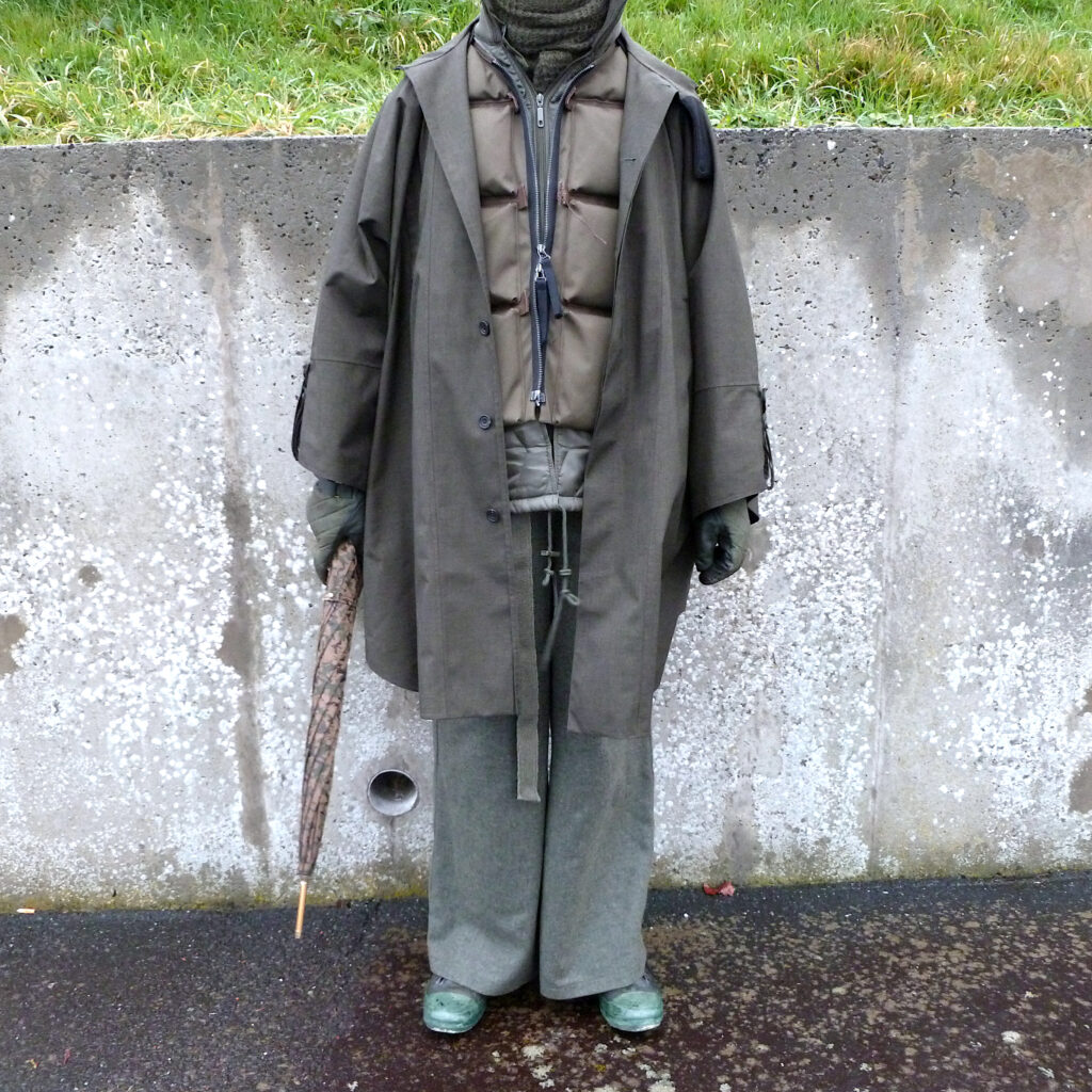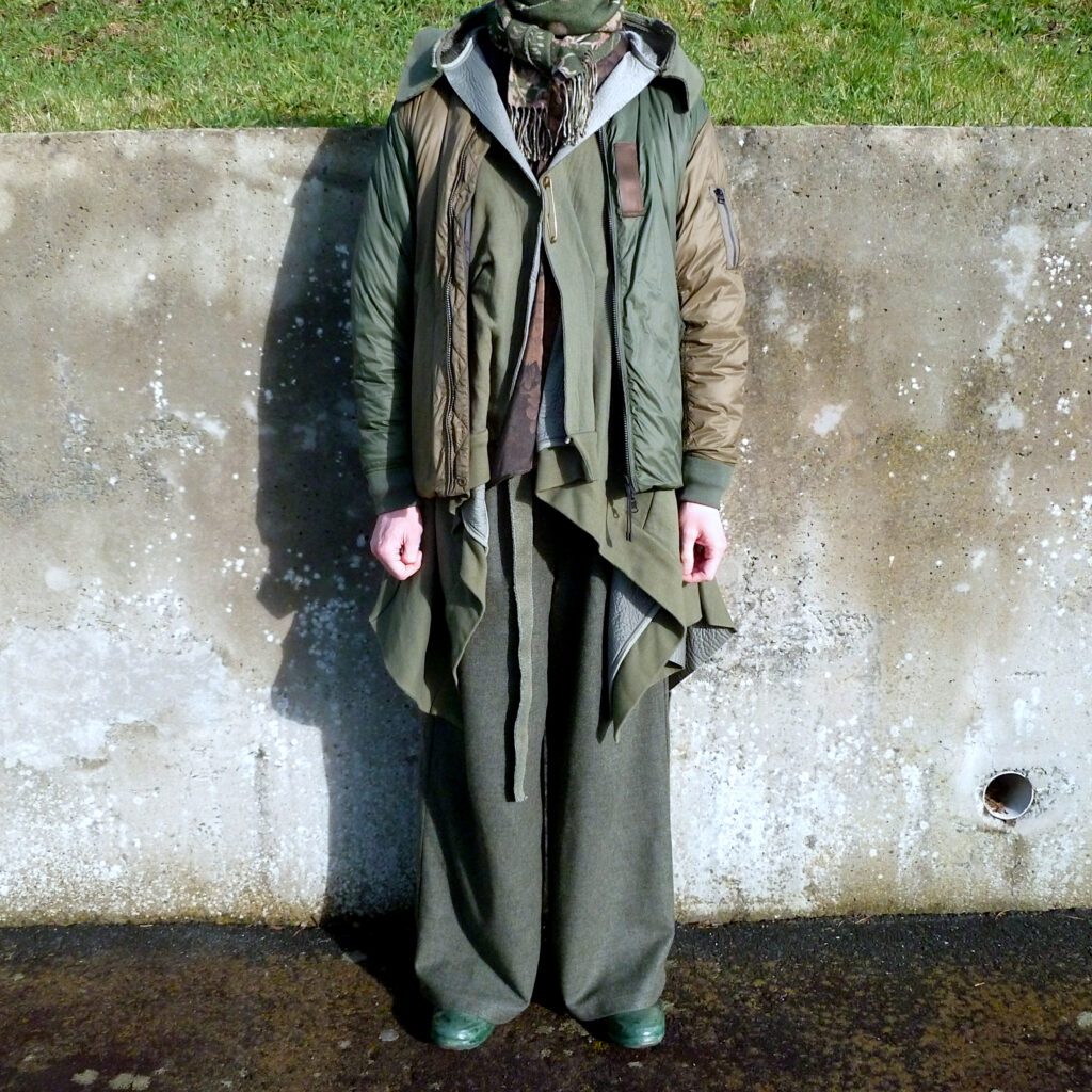 Au début 2024, je me suis aussi rendu compte d’une limite supplémentaire à tout faire de tête : quand j’achetais un nouveau manteau ou blouson, je le portais d’abord fermé pour créer une tenue facile, puis je le portais ouvert dans d’autres looks. C’est ce que j’ai fait avec le bomber-doudoune cité plus haut, et avec ce manteau.
